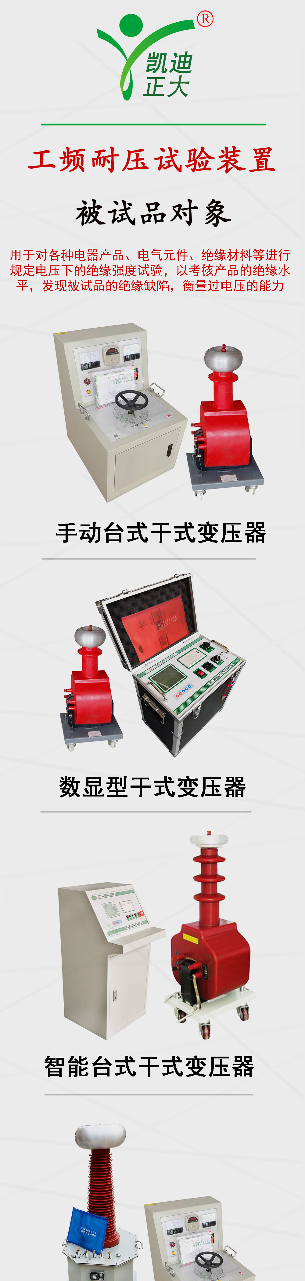 當(dāng)前位置:首頁(yè) > 產(chǎn)品中心 > 主營(yíng)產(chǎn)品 KDGTB工頻耐壓試驗(yàn)裝置是鑒定電力設(shè)備絕緣強(qiáng)度的嚴(yán)格、有效和直接的方法。它能檢查出那些危險(xiǎn)性較大的集中缺陷,對(duì)判斷電力設(shè)備能否繼續(xù)參加運(yùn)行具有決定性作用,是保證設(shè)備絕緣水平、避免發(fā)生絕緣事故的重要手段。