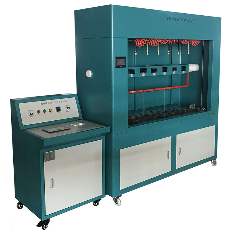 2.絕緣鞋試驗采用里面放置小鋼珠的干式試驗方法,擺脫了傳統(tǒng)的往鞋子里灌水做試驗,試驗完畢后不易曬干的做法。手套試驗采用注水的試驗方法,設(shè)備可對手套自動注水,試驗人員只需按要求安裝好手套,提高工作效率。