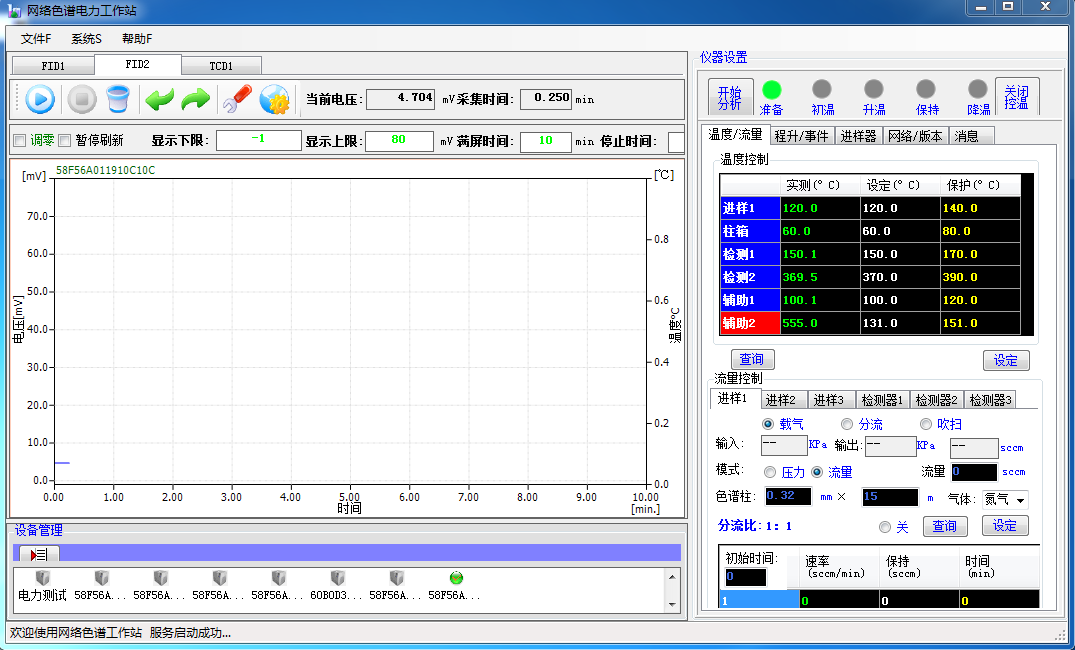 KDZD1189所內(nèi)置有自動氣路控制裝置,在您電腦點火操作時自動放掉一部分空氣,使氫氣和空氣的配比達到適合點火的比例,并在自動完成點火后恢復(fù)這一比例;同樣,通過工作站軟件中的橋流設(shè)置窗口即可完成熱導(dǎo)橋流的設(shè)置