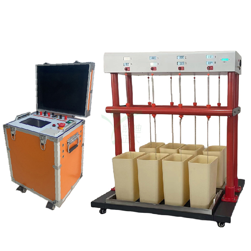 本產品各項指標均符合國標的要求。可以按以上的規(guī)程要求對絕緣鞋、絕緣手套等安全工器具進行智能化絕緣耐壓試驗,每路試品均具有分斷機構,當其中一路擊穿時或超過設定泄漏電流值時,該路試品將自動脫離試驗,并將當前泄漏電流保持顯示,不影響其它試品進行試驗。高低壓分離,泄漏電流采用抗干擾無線傳輸技術傳輸回控制箱,保護人身的安全。