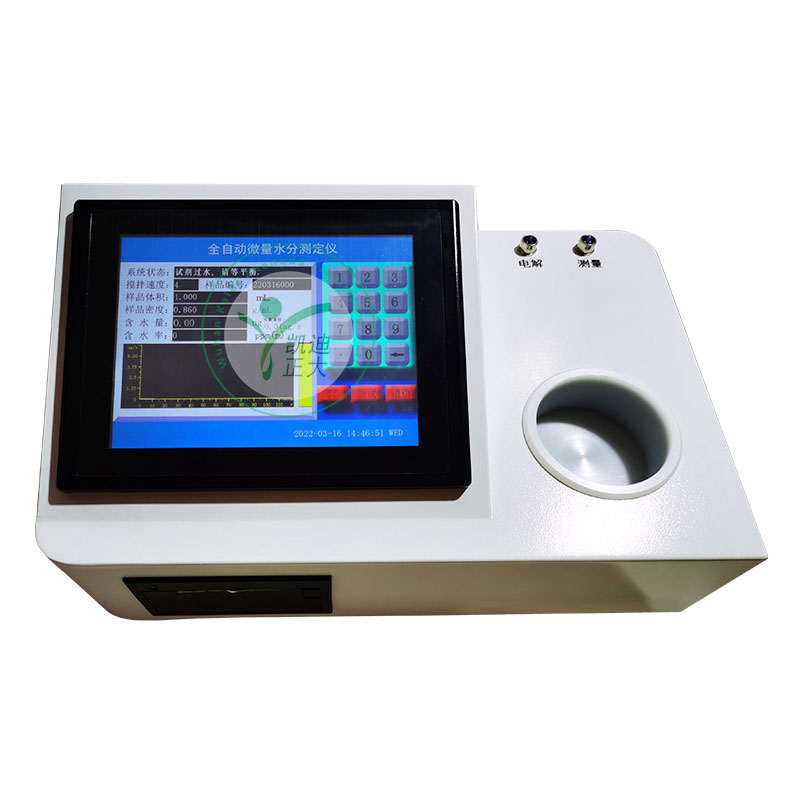 KDWS809G全自動微量水分測定儀采用了LCD大屏幕彩色顯示器,觸摸屏輸入方式,界面簡潔,操作內(nèi)容漢字提示,人機(jī)對話靈活、方便,除具有檢測靈敏閥高、操作簡單、測試速度快、重復(fù)性好等特點外,還具有實驗結(jié)果存儲、打印功能、時間顯示功能。
