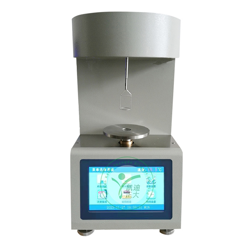 KDZL-807G全自動(dòng)界面張力測(cè)定儀,按照GB6541-86《石油產(chǎn)品油對(duì)水界面張力測(cè)定法》(圓環(huán)法)標(biāo)準(zhǔn)要求,測(cè)量各種液體的表面張力(液—氣相界面)及礦物油與水的界面張力(液—液相界面)。儀器采用彩色觸摸屏顯示,漢字菜單提示的無標(biāo)識(shí)按鍵,自動(dòng)化程度高,工作可靠,重復(fù)性好,操作簡(jiǎn)單,只需開機(jī)后按菜單提示操作,便可完成全部試驗(yàn)。