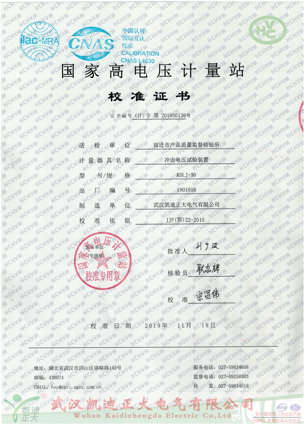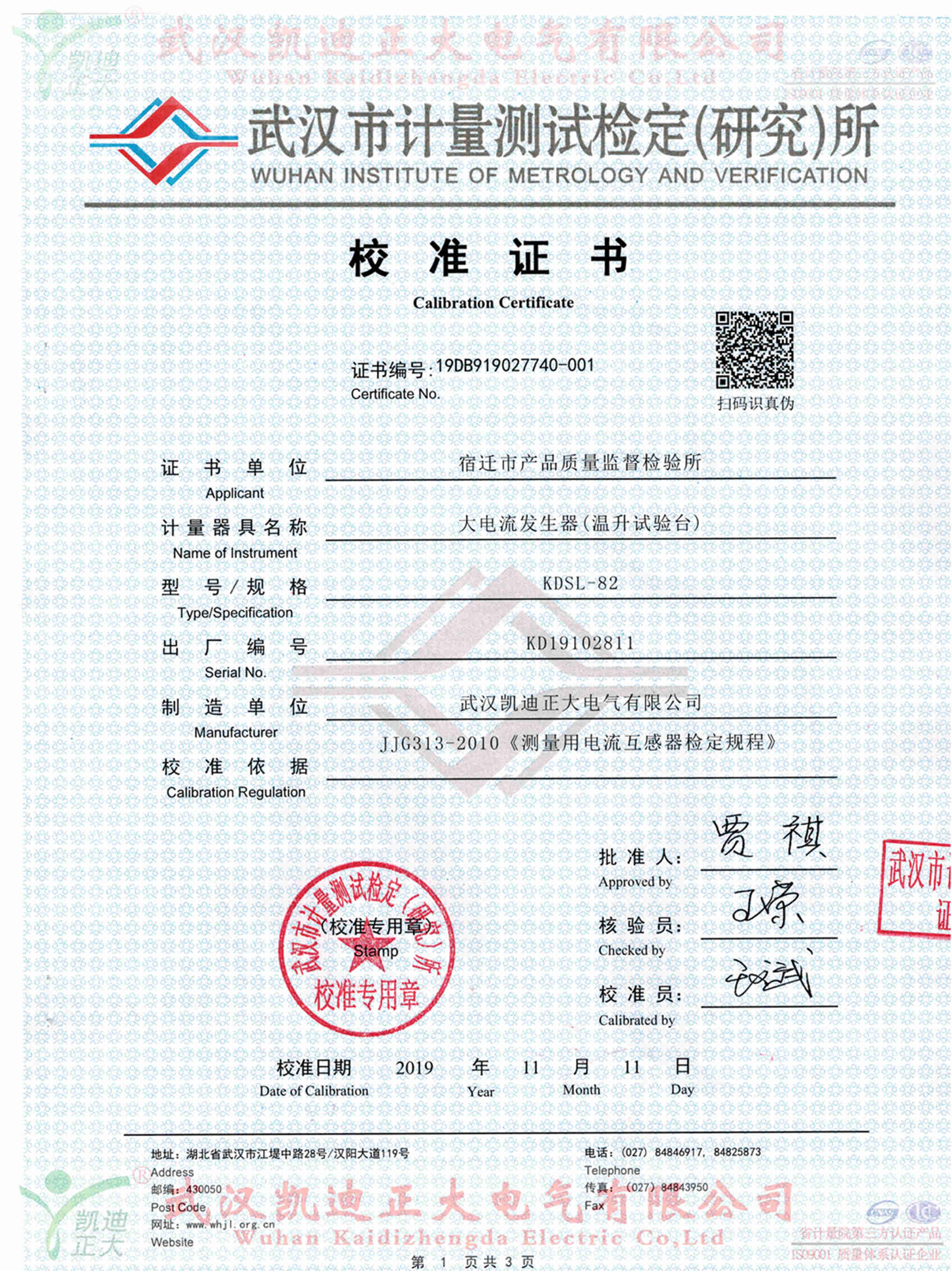 武漢市計量測試檢定(研究)所對宿遷市產(chǎn)品質(zhì)量監(jiān)督檢驗所采購的產(chǎn)品作檢定效驗報告。