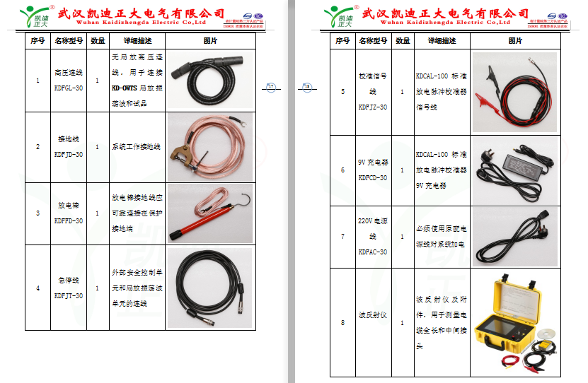 KD-OWTS配套附件如表4-1,現(xiàn)場試驗時須使用系統(tǒng)原配高壓連線、電源線和接地線進(jìn)行連接,如線纜有缺損,需聯(lián)系廠家維修。