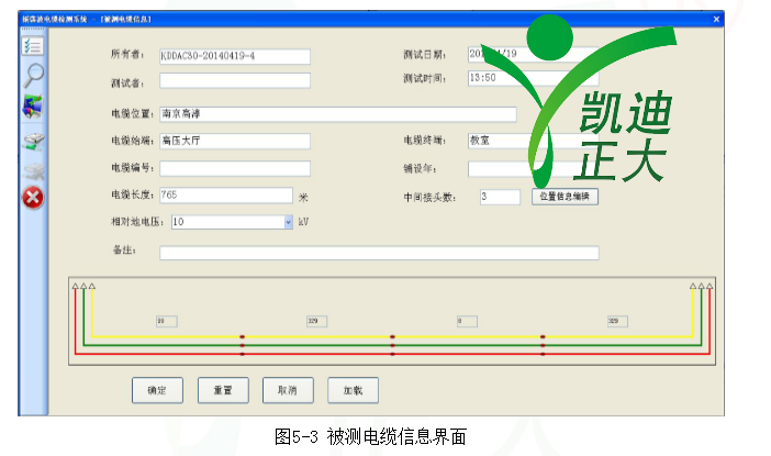 啟動時,被測電纜信息默認(rèn)加載最近一次試驗的電纜信息。
