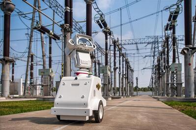 變電站中最高新的無軌智能巡檢機器人,有著擬人化的外形,頭部有眼睛、耳朵,軀體靠脖子與之連接,腳部為兩組大小不同的輪子。在高溫、大風、暴雨等各種惡劣天氣下,智能機器人能代替人力,在電網(wǎng)設備的運維中發(fā)揮重要作用。