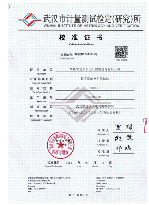 上一篇:武漢凱迪正大KDDT-10A接地引下線導(dǎo)通電阻測試儀校準(zhǔn)證書
