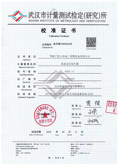 上一篇:武漢凱迪正大KDZD-100KV交直流數(shù)字千伏表校準(zhǔn)證書