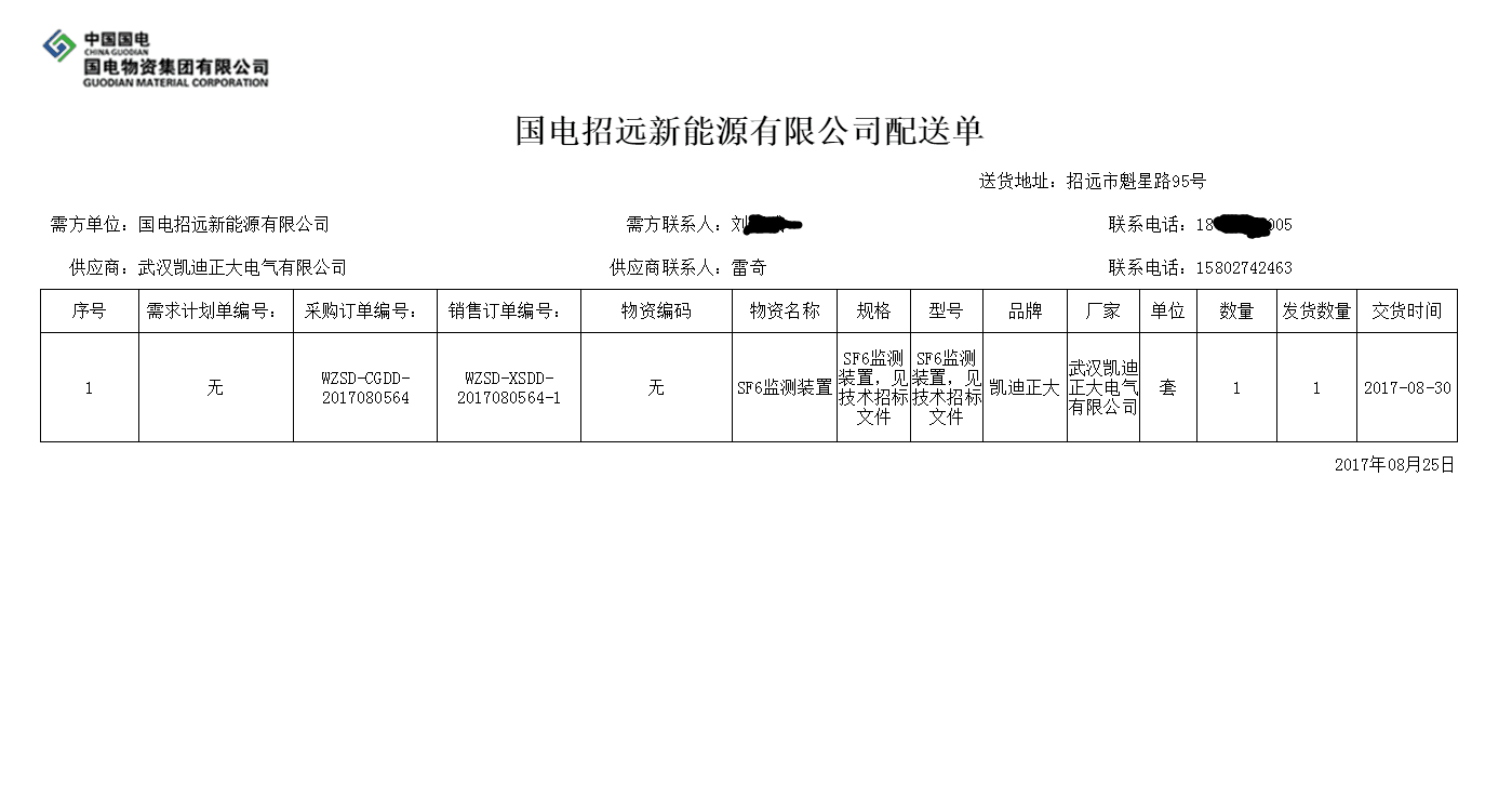 近期江城持續(xù)高溫,酷暑難耐。但絲毫沒有影響凱迪正大同仁的工作熱情,八月中旬,凱迪正大在國(guó)電招遠(yuǎn)新能源有限公司《35KV配電室加裝SF6監(jiān)測(cè)裝置項(xiàng)目》招標(biāo)采購(gòu)中,憑借著良好的市場(chǎng)信譽(yù),可靠的產(chǎn)品質(zhì)量成功拿下此標(biāo)的。詢價(jià)單編號(hào):WZSD-2017080285
