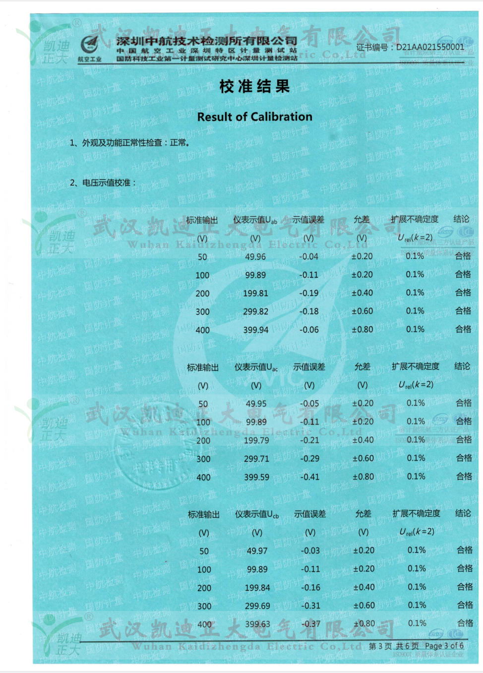 KDBR-IV變壓器容量及特性測(cè)試儀是我司老客戶天水程達(dá)電氣再次采購(gòu)的,因多次為質(zhì)檢所等相關(guān)單位提供高低壓成套檢測(cè)設(shè)備,所以程達(dá)電氣對(duì)我司產(chǎn)品青睞。應(yīng)要求需要出具中國(guó)合格評(píng)定國(guó)家認(rèn)可委員會(huì)(CNAS)相關(guān)單位的電壓示值校準(zhǔn)、電流示值校準(zhǔn)、功率示值校準(zhǔn)等數(shù)據(jù)。深圳中航技術(shù)檢測(cè)大多數(shù)限公司(中國(guó)航空工業(yè)深圳特區(qū)計(jì)量測(cè)試站/國(guó)防科技工業(yè)第一計(jì)量測(cè)試研究中心深圳計(jì)量檢測(cè)站 )是航空工業(yè)北京長(zhǎng)城計(jì)量測(cè)試技術(shù)研究所、國(guó)防科技工業(yè)第一計(jì)量測(cè)試研究中心于1986年投資建立的計(jì)量技術(shù)檢測(cè)服務(wù)機(jī)構(gòu),是深圳市最早的法定計(jì)量檢測(cè)機(jī)構(gòu)之一,是具有法定計(jì)量、國(guó)防計(jì)量、軍用計(jì)量屬性的第三方公正實(shí)驗(yàn)室。