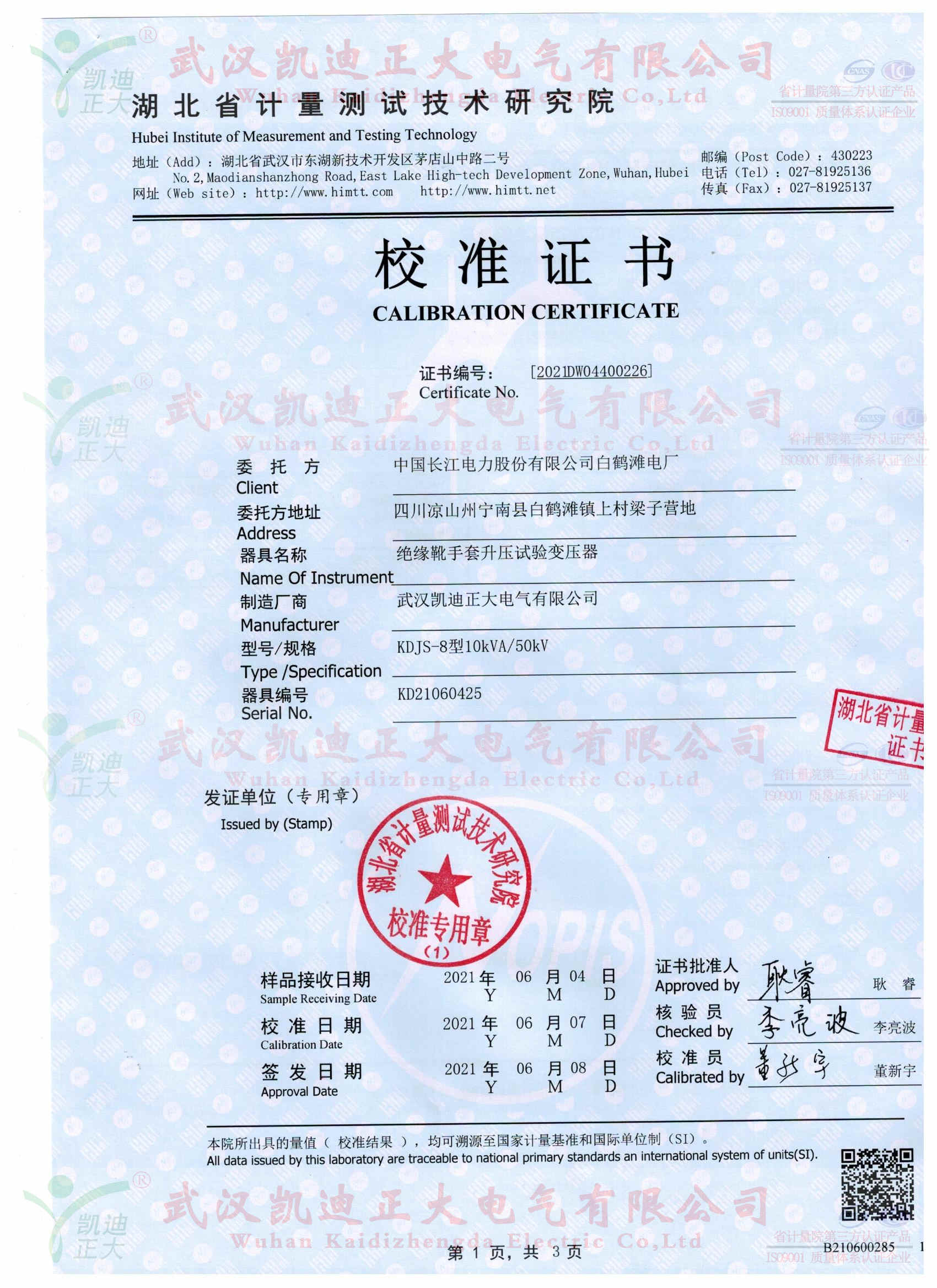 KDJS-8自動(dòng)絕緣靴手套耐壓泄漏電流測(cè)試儀獲得湖北省計(jì)量測(cè)試技術(shù)研究院校準(zhǔn)證書,證書編號(hào)《2021DW04400226》,采用FRC-150M數(shù)字高壓表檢定電壓合格、產(chǎn)品各項(xiàng)指標(biāo)均符合國(guó)標(biāo)的要求。按《電力安全工器具預(yù)防性試驗(yàn)規(guī)程》要求對(duì)絕緣鞋、絕緣手套等安全工器具進(jìn)行智能化絕緣耐壓試驗(yàn),絕緣靴及絕緣手套耐試驗(yàn)周期為半年,試驗(yàn)過(guò)程中不允許擊穿,同時(shí)絕緣靴絕緣絕緣手套泄漏電流不大于限定值。產(chǎn)品適用于大多數(shù)與電力相關(guān)行業(yè)。