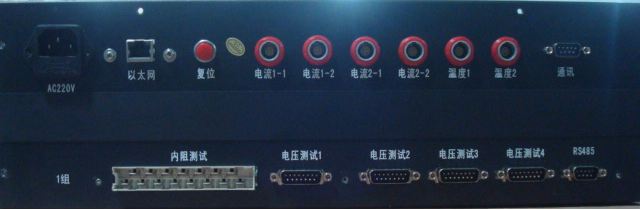 (4) 兩組電流測(cè)試接口 (5) 兩個(gè)溫度測(cè)試接口 (6) 通訊接口