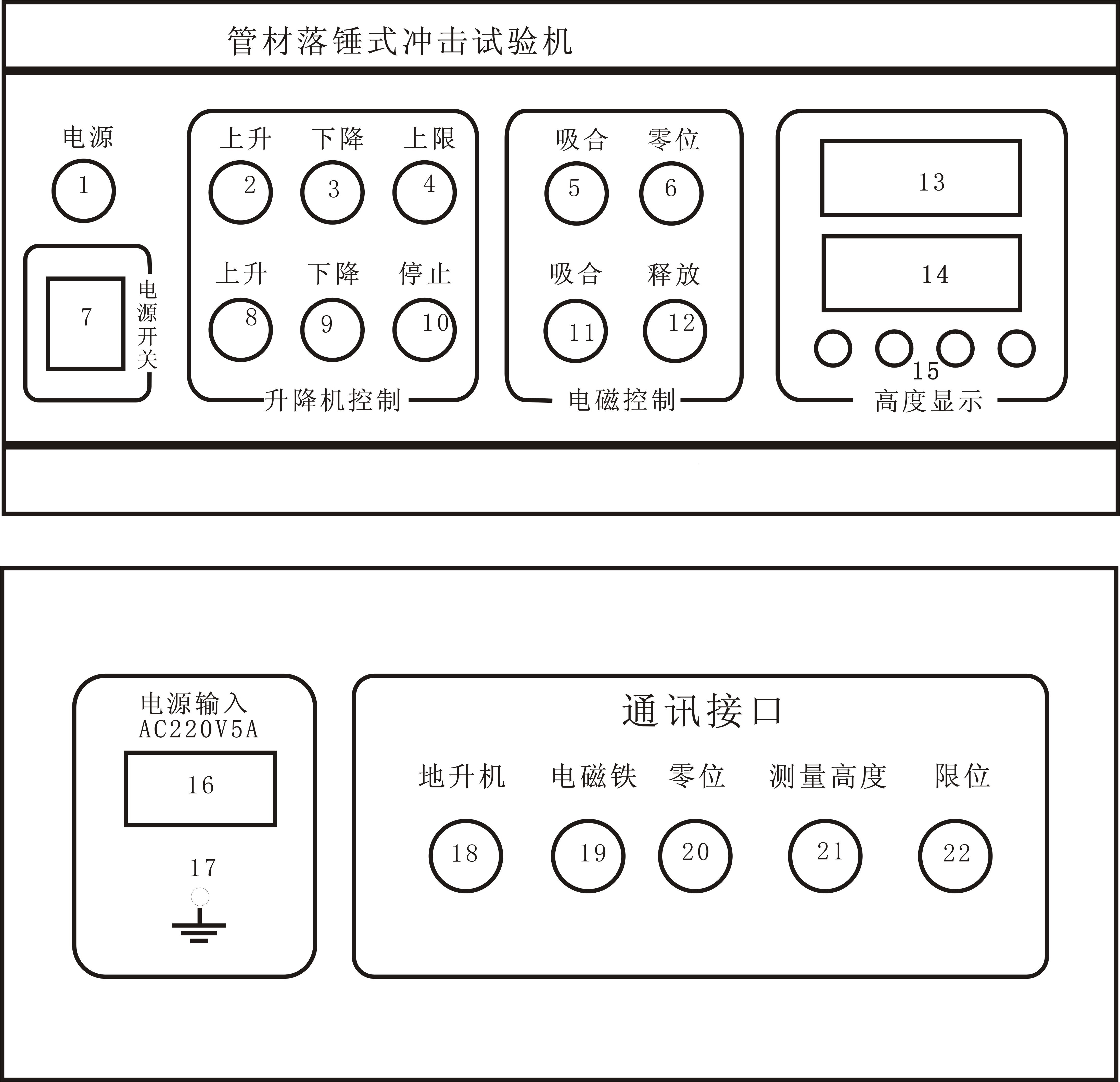 11、12、電磁鐵動作按鈕,控制電磁體提起落錘和釋放落錘。
