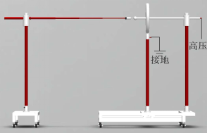 這里以35KV帶接觸電極延長的驗電器為例(注:做啟動電壓需配合升壓設備):首先將帶導軌的試驗平車上中間平車(安裝有均壓環(huán))移動標有a1430mm(紅色帶箭頭)位置,平車上的標尺與平臺上的標尺對齊。然后接好地線包括2平車底座、均壓環(huán)及升壓設備,將驗電器固定在小平車上,同時將驗電器抽出,然后移動小平車使得驗電器穿過均壓環(huán),且驗電器的金屬頭與均壓球接觸保持即可,將升壓設備的高壓導線接到均壓球延長桿上,再接升壓設備的其他導線,試驗人員撤離到安全區(qū)后合上電壓,將升壓設備均勻加壓知道驗電器發(fā)出報警,馬上停止加壓,此時記錄下高壓電壓數(shù)值,且比對數(shù)值是否落在35KV的15%~40%內(5.25kv~14kv),是表明驗電器啟動電壓報警合格,否則此驗電器不合格。其它規(guī)格的驗電器啟動電壓也是如此,通過移動均壓環(huán)平車到指定位置即可。