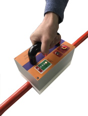 (4)將檢測(cè)儀v形電極對(duì)準(zhǔn)桿、棒、繩索并滑動(dòng)使其全部通過檢測(cè),觀察led顯示屏狀態(tài):一旦紅色的燈亮起,表示被測(cè)物體不合格,將檢測(cè)儀轉(zhuǎn)向再做幾次測(cè)試。若被測(cè)試品直徑超過39mm,將桿或管旋轉(zhuǎn)90度再做幾次測(cè)試。