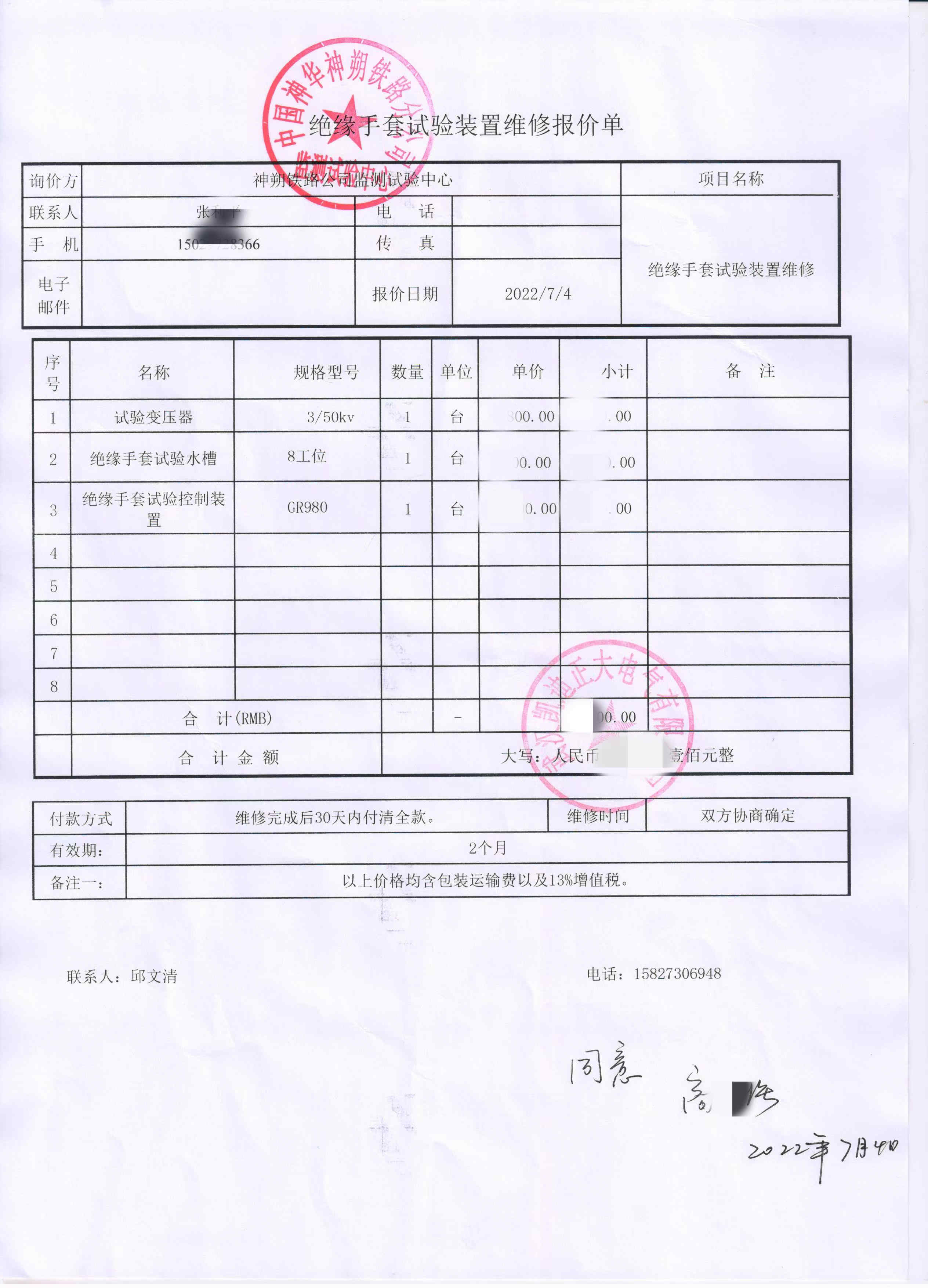 2022年,根據(jù)公司制度標準一體化建設(shè)工作部署,公司組織修訂了《國家電網(wǎng)公司質(zhì)量監(jiān)督工作規(guī)定》和《國家電網(wǎng)公司電力安全工器具管理規(guī)定》,經(jīng)公司42014年第313次規(guī)章制度管理委員會審議通過,現(xiàn)予印發(fā),請認真貫徹落實。需維修和置換全新KDJS-6絕緣手套試驗系統(tǒng),包含8工位絕緣手套靴試驗水槽/3kvA50kV絕緣手套試驗升壓干式試驗變壓器、電氣設(shè)備交流碾壓試驗變壓器(油式10kvA150kV)等設(shè)備一批。