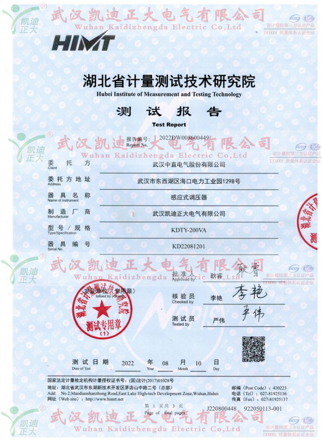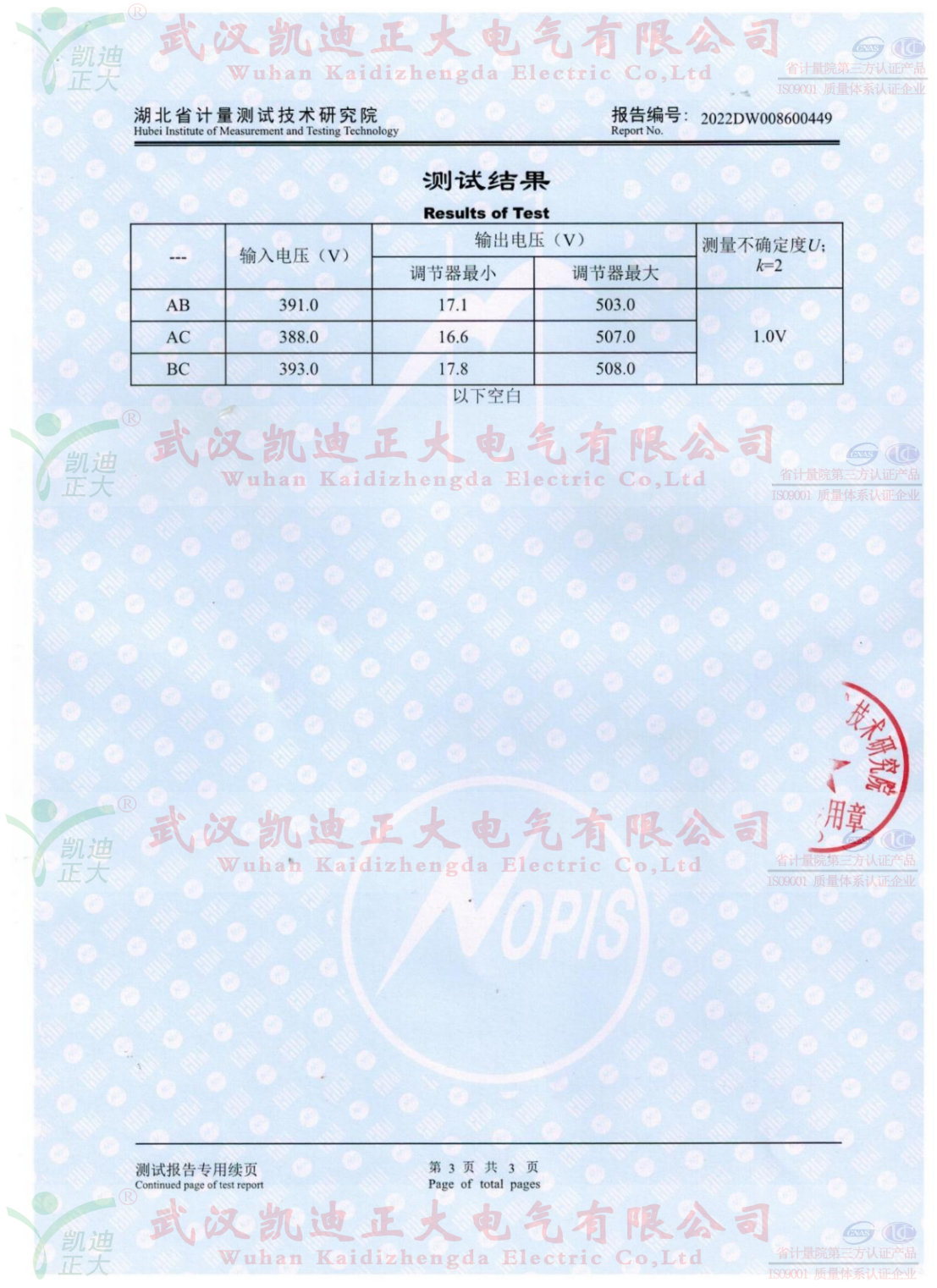 由于供應(yīng)速度、售后服務(wù)態(tài)度因素很快就收到了長興電器集團(tuán)中直電氣股份公司的采購訂單。感應(yīng)調(diào)壓器送湖北省計(jì)量測(cè)試研究員測(cè)試的紙質(zhì)報(bào)告已出。送檢結(jié)果如下:本次檢測(cè)是以數(shù)字多用表為主要檢測(cè)設(shè)備,以JJF 1587-2016《數(shù)字多用表校準(zhǔn)規(guī)范》為技術(shù)依據(jù),由湖北省計(jì)量測(cè)試技術(shù)研究院檢測(cè)完成的。