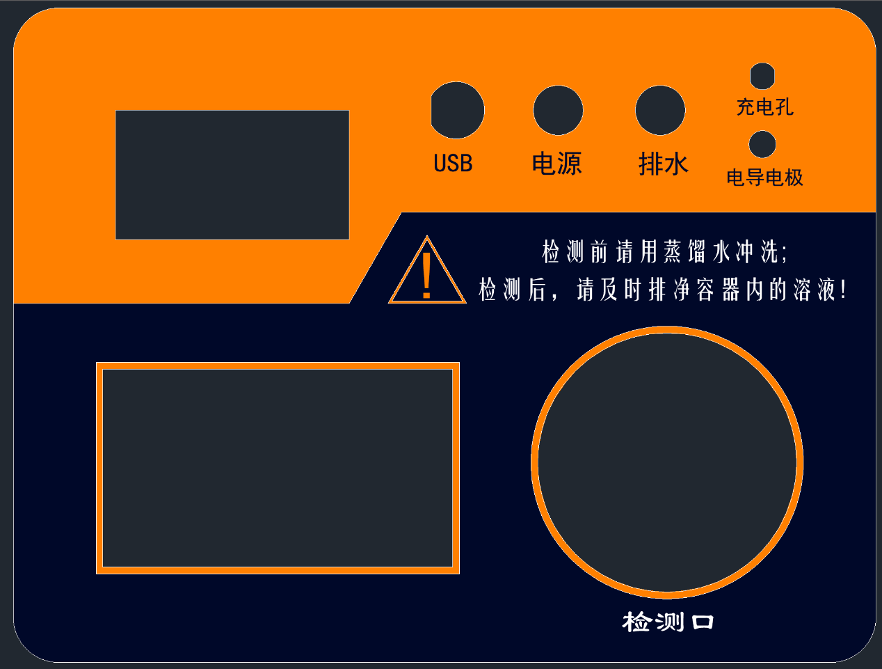 排水口:測(cè)量完成后用來排出被測(cè)溶液,排水前要插入儀器配套的排水管。