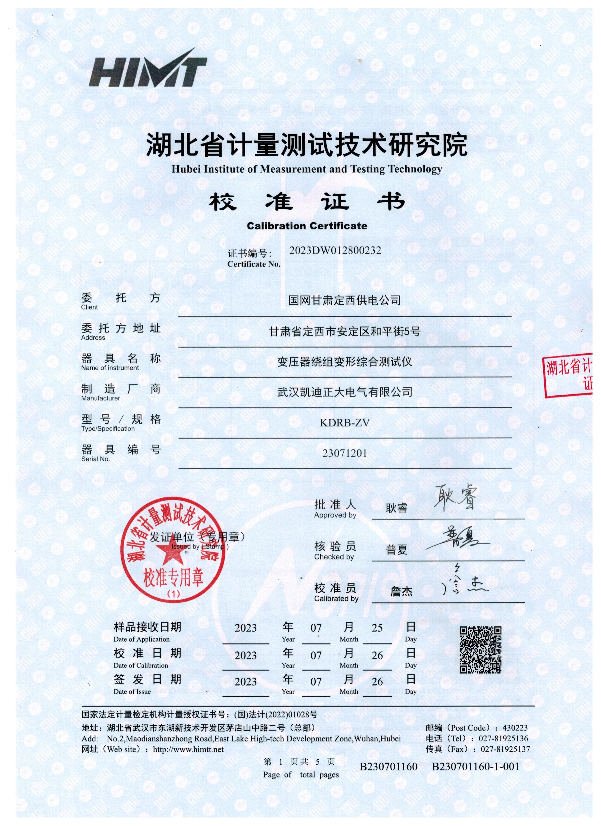 變壓器繞組變形綜合測試儀獲得電氣設(shè)備質(zhì)量檢驗(yàn)測試中心報告