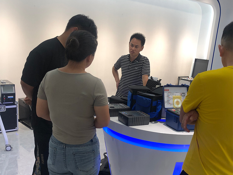 在我公司趙總與王工的陪同下,安徽某電力公司代表首先參觀了寬敞明亮的設(shè)備展廳。這里陳列著各類電力檢測(cè)設(shè)備,趙總與王工對(duì)展廳陳列的設(shè)備做了大致的講解。并對(duì)三相繼電保護(hù)測(cè)試儀、變壓器容量測(cè)試儀及變頻抗干擾介質(zhì)損耗測(cè)試儀進(jìn)行了細(xì)致介紹。