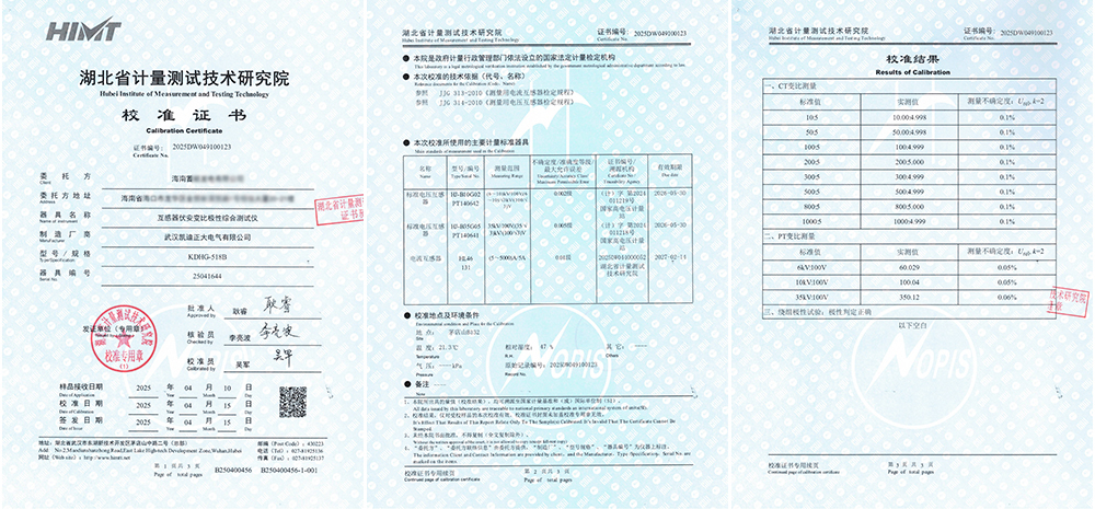 兩套設備均通過精度、重復性及穩(wěn)定性測試,同步獲得校準證書(證書編號:2025DW049100124;2025DW049100123)。此次雙機全項達標不僅印證了武漢凱迪正大產(chǎn)品的可靠品質(zhì),更彰顯了海南客戶在電力檢測裝備選型中的精準判斷,為深化長期合作奠定了堅實互信基礎。
