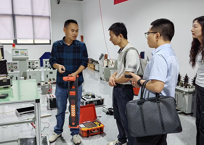 2025.9.30,深圳市特力康科技有限公司代表團一行蒞臨凱迪正大進行參觀與技術交流。深圳市特力康科技有限公司是一家專注于電力行業(yè)智能監(jiān)測設備研發(fā)、生產(chǎn)與銷售的技術企業(yè)。此次訪問旨在增進雙方了解,探討在電纜探測技術領域的合作機會。凱迪正大對代表團的到訪表示熱烈歡迎,并安排了包含產(chǎn)品展示、實操觀摩與技術交流的行程安排。在整個參觀過程中,雙方重點圍繞凱迪正大的核心產(chǎn)品——KD-2190智能電纜綜合探測儀展開了深入交流。