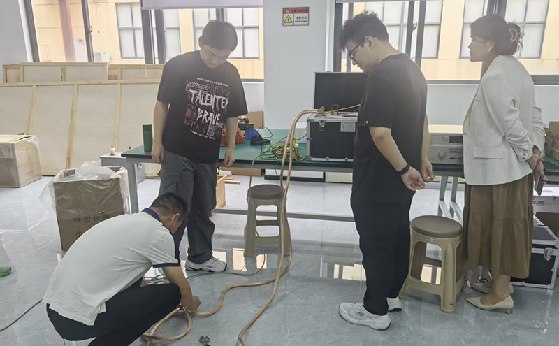 隨后,技術(shù)人員陪同嘉賓走進(jìn)生產(chǎn)車間。我們向來賓簡要說明了高壓諧振電抗器、超高壓耐壓測試儀等產(chǎn)品的組裝與調(diào)試。希望通過呈現(xiàn)有序的生產(chǎn)現(xiàn)場和嚴(yán)謹(jǐn)?shù)淖鳂I(yè)流程,讓代表團(tuán)感受到凱迪對產(chǎn)品品質(zhì)的切實(shí)追求與保障能力。